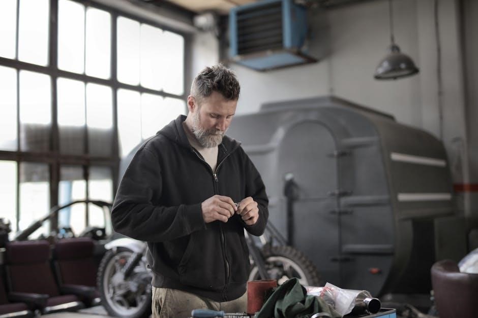 This section covers engine overhaul procedures, fuel system inspections, and maintenance schedules to ensure optimal performance and longevity. Regular checks prevent fuel leaks and corrosion;